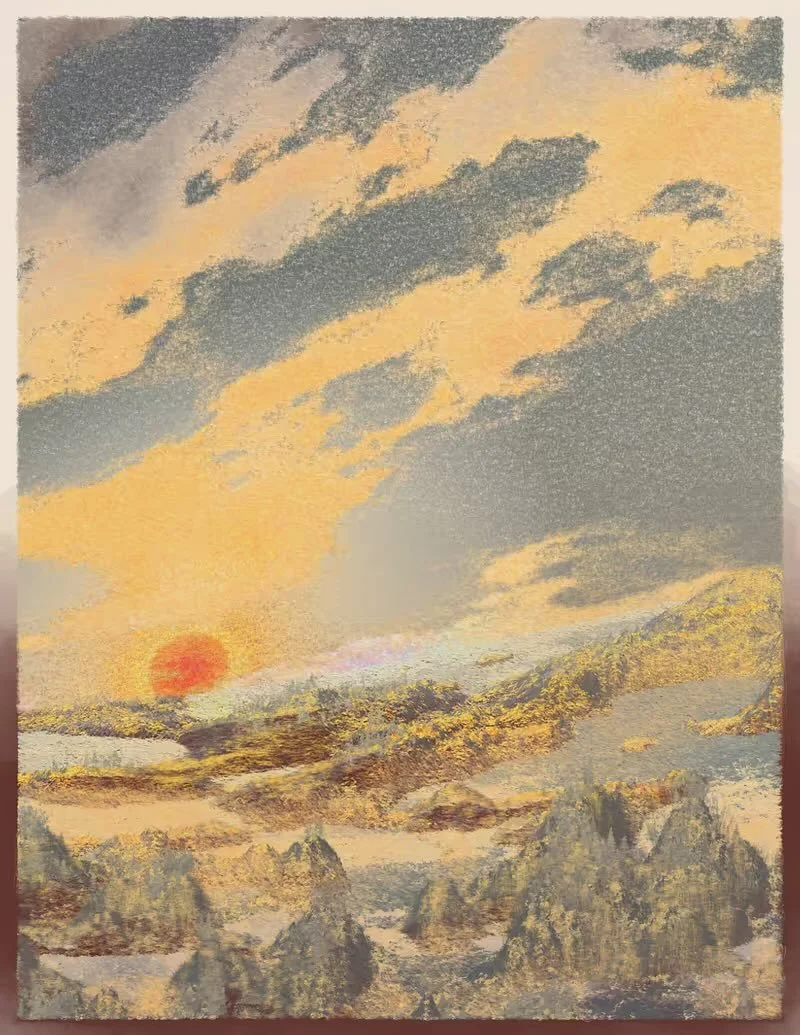 The work is fully generative - painted by algorithm, inspired by pointillism and impressionism. Thousands of digital strokes build up surreal, Fauvist color fields, where reality and imagination blur with each gentle wave of light.