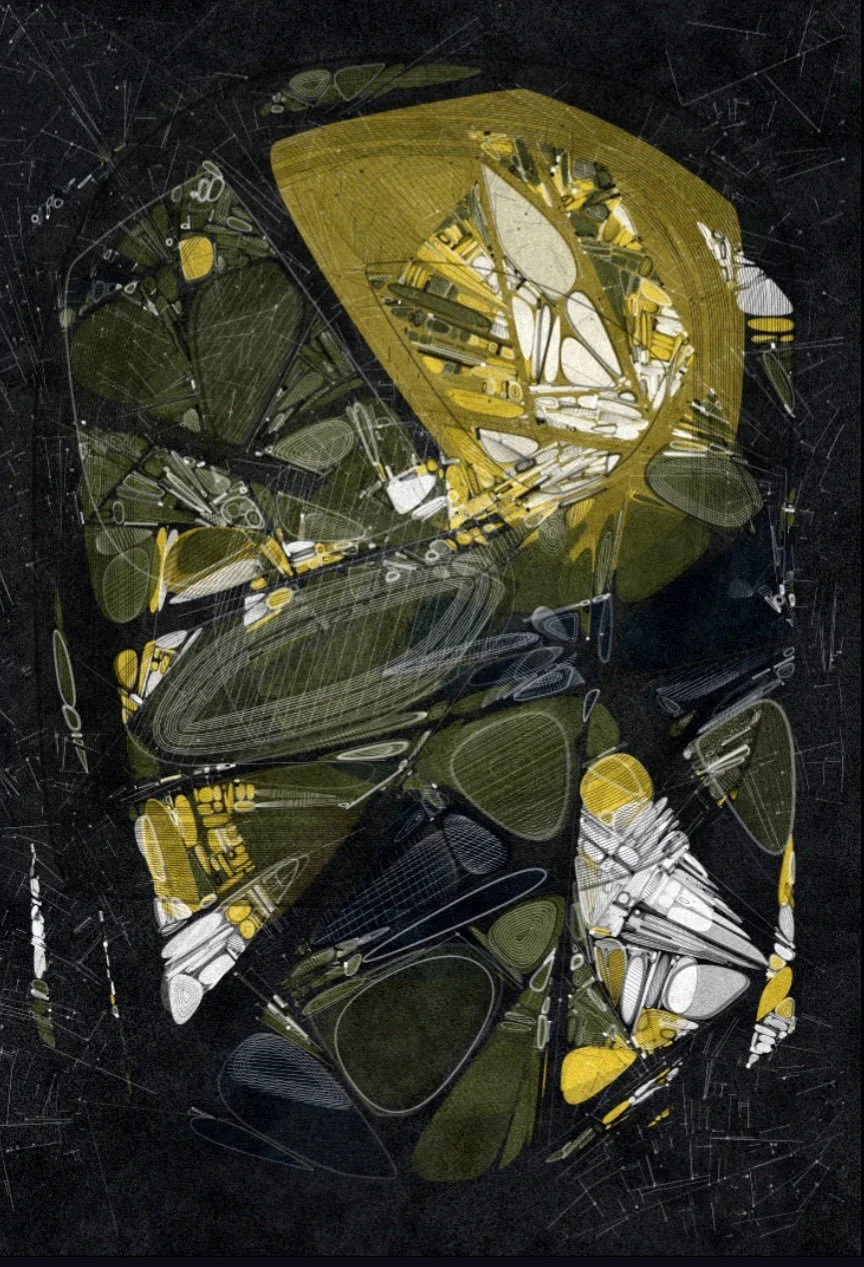 Each piece in Mitosis begins with non-overlapping lines, generating patterns reminiscent of both cell structures and architectural sketches. The artwork evolves through subdivisions and layering, creating an interplay of forms that reflect both natural and man-made systems.